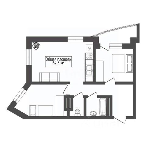 - Общая площадь: 62.3 м2