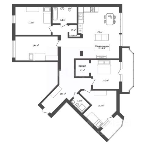 - Общая площадь: 155.2 м2