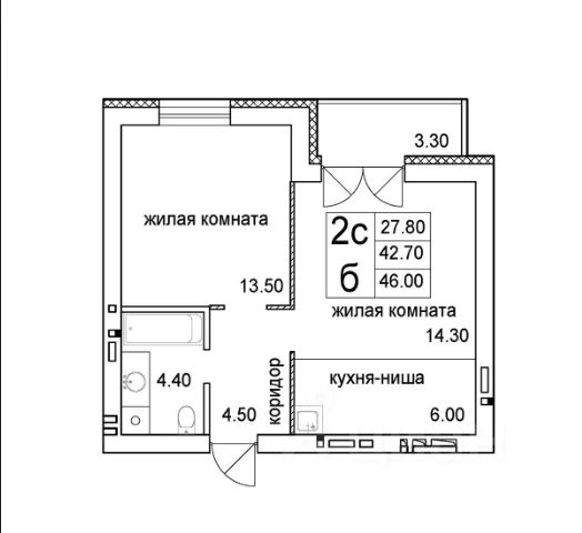- Общая площадь 43.1 м2