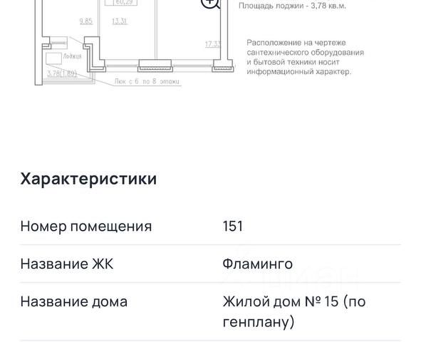 - Общая площадь: 62.5 м2