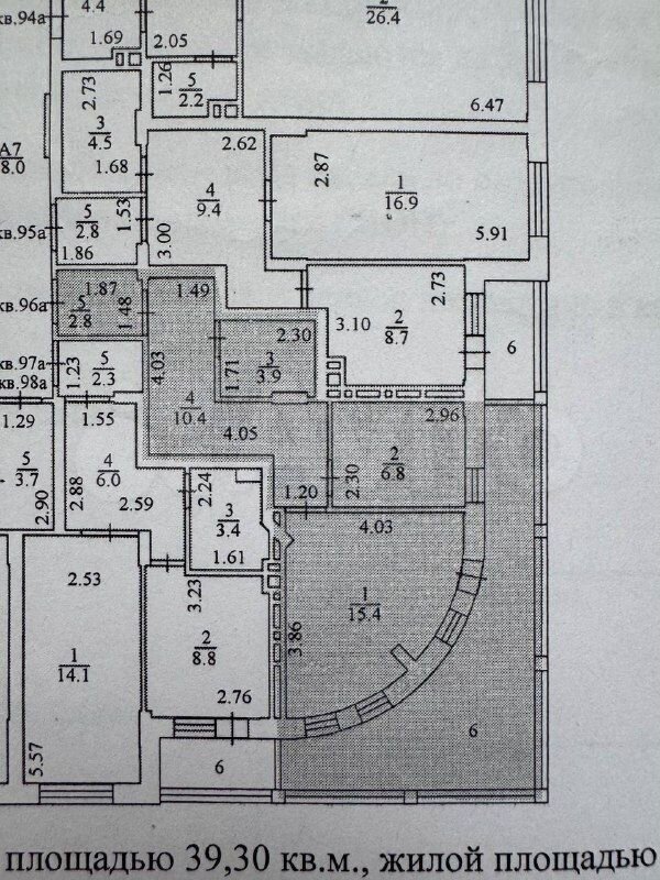 - Общая площадь: 39.3 м2