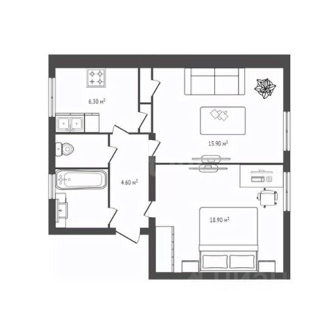 - Общая площадь 53 м2