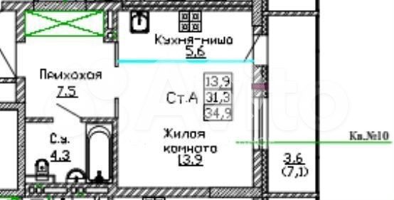 - Общая площадь 34.9 м2