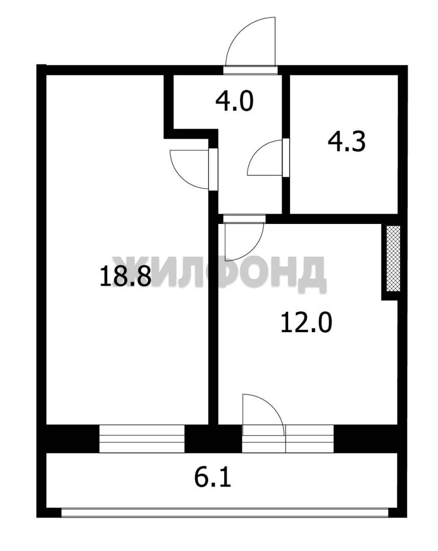 - Общая площадь 39.1 м2