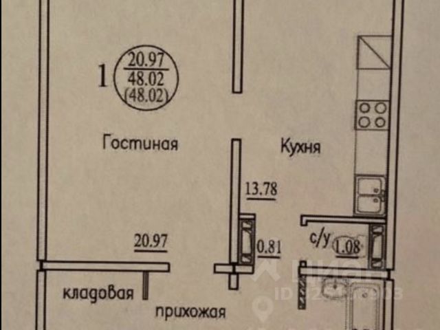 - Общая площадь: 48 м2