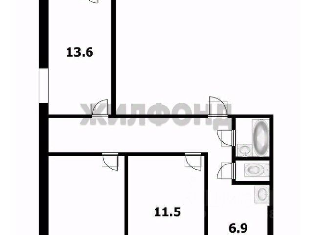 - Общая площадь: 59.5 м2