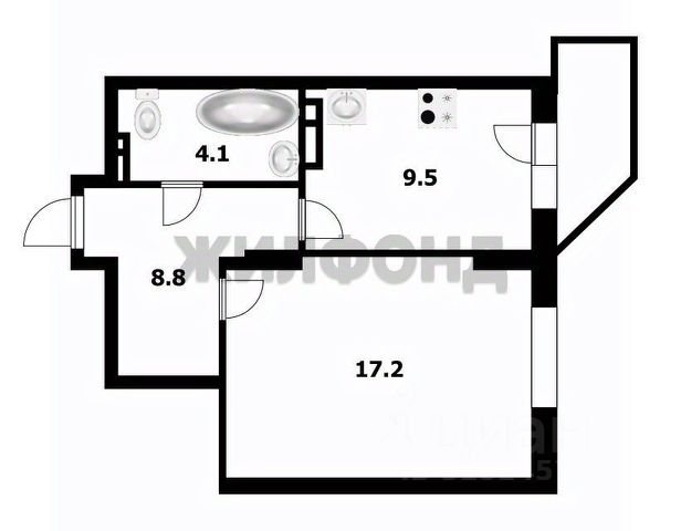 - Общая площадь: 37.6 м2