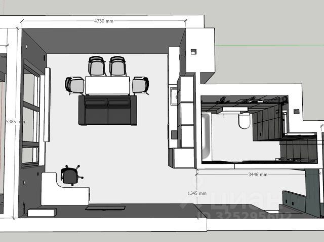 - Общая площадь 40.1 м2