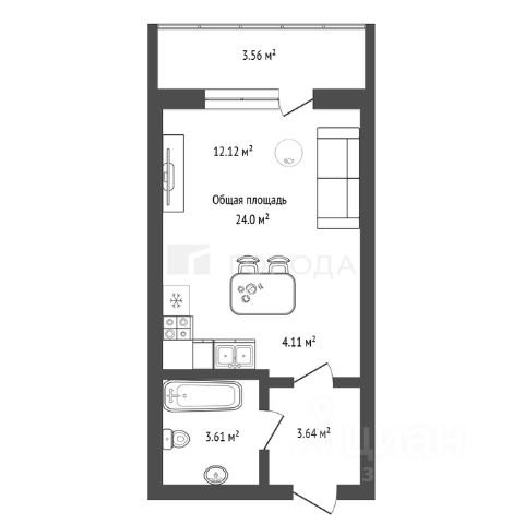 - Общая площадь: 24 м2