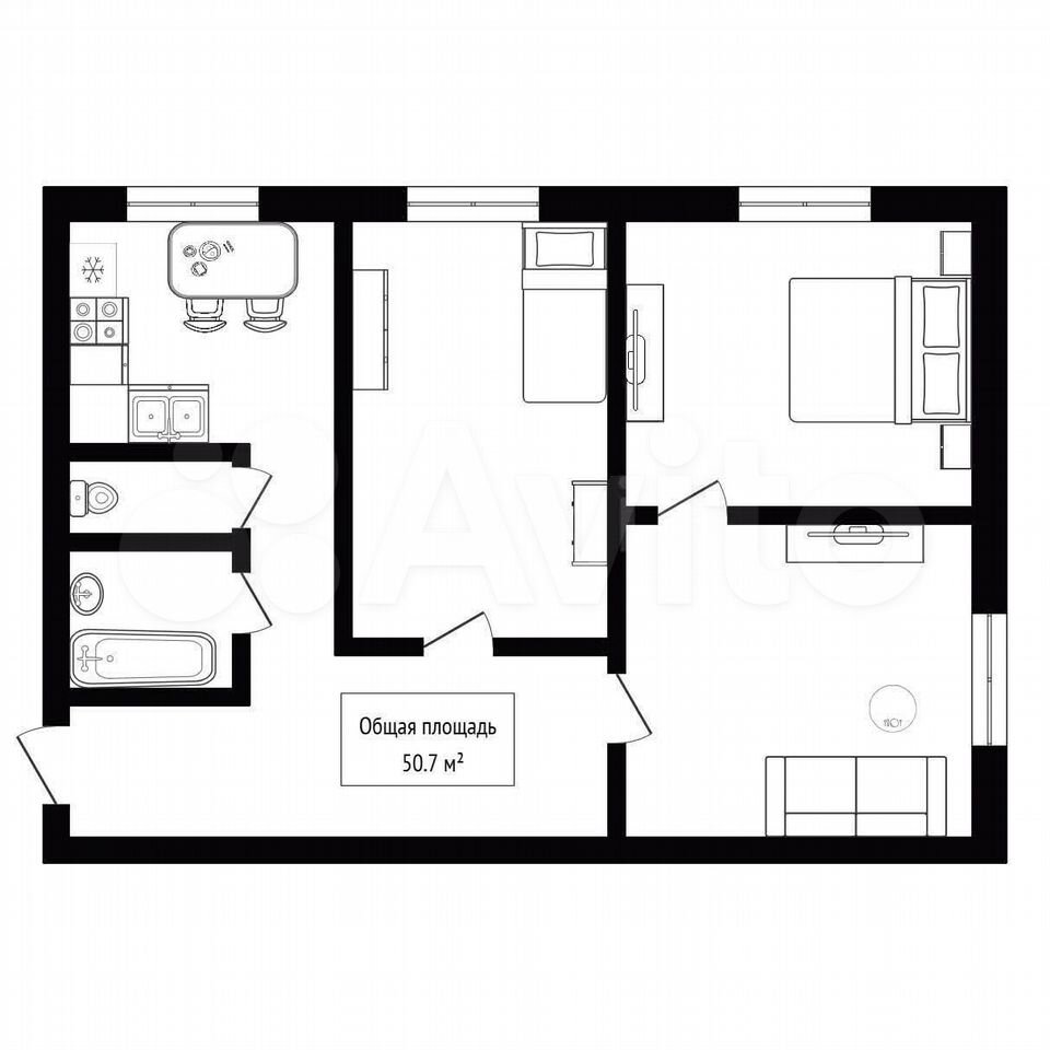 - Общая площадь 50.7 м2