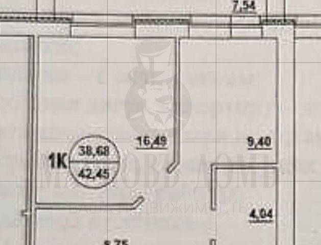 - Общая площадь: 42.5 м2