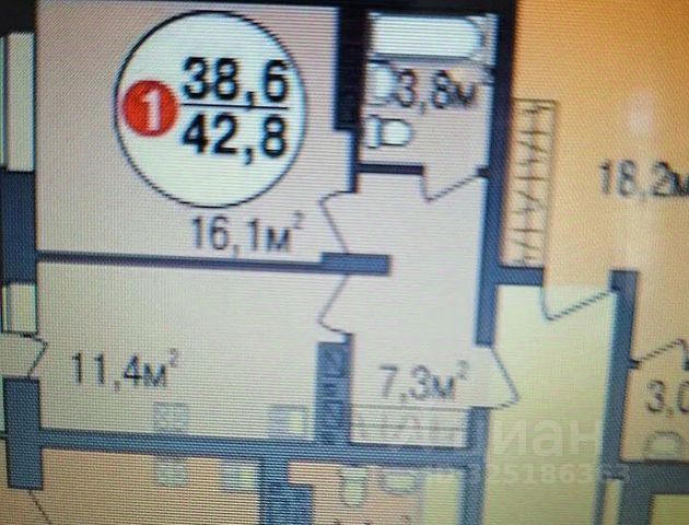 - Общая площадь: 42.8 м2