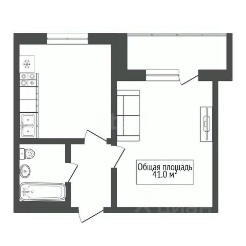 - Общая площадь: 41 м2