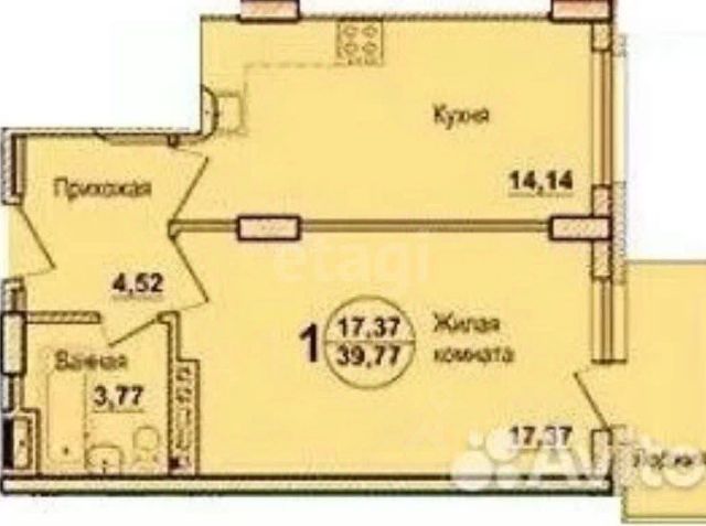 - Общая площадь: 39.7 м2