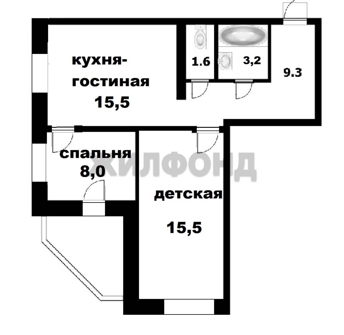 - Площадь кухни: 15.5 м2