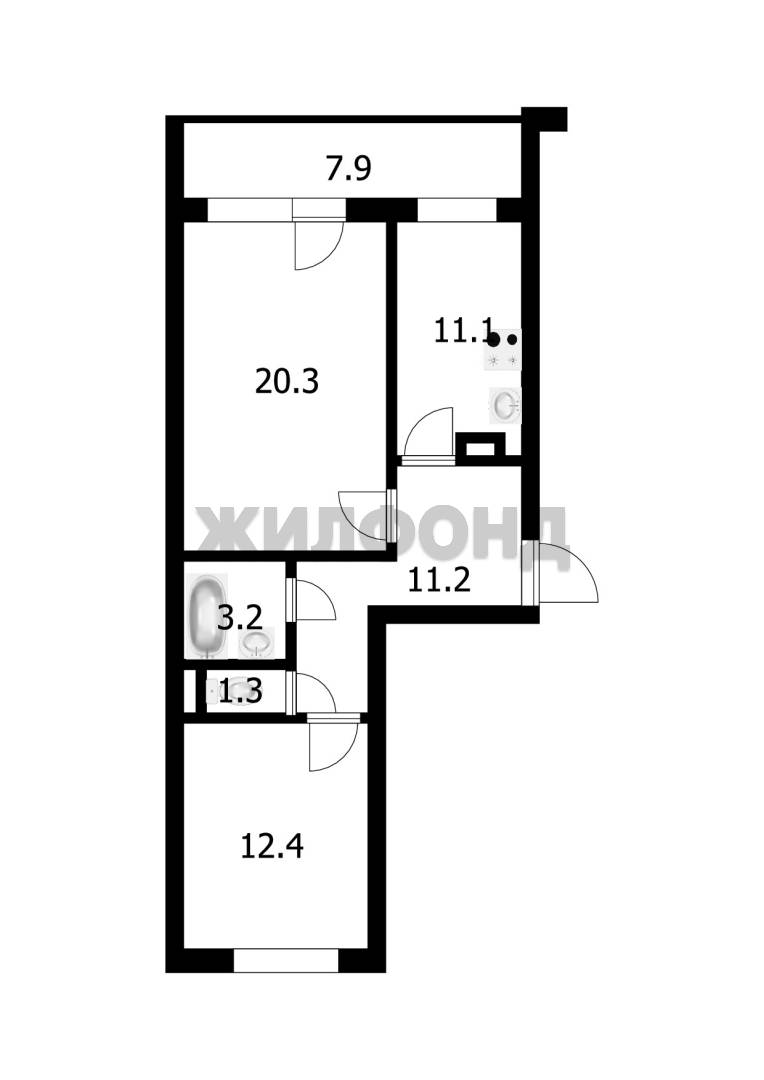 - Жилая площадь: 32.2 м2