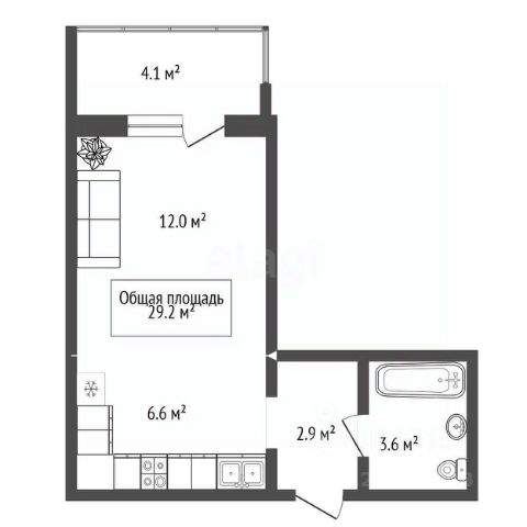 - Общая площадь: 29 м2