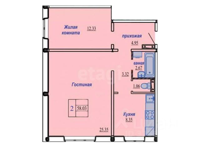 - Общая площадь 58.3 м2