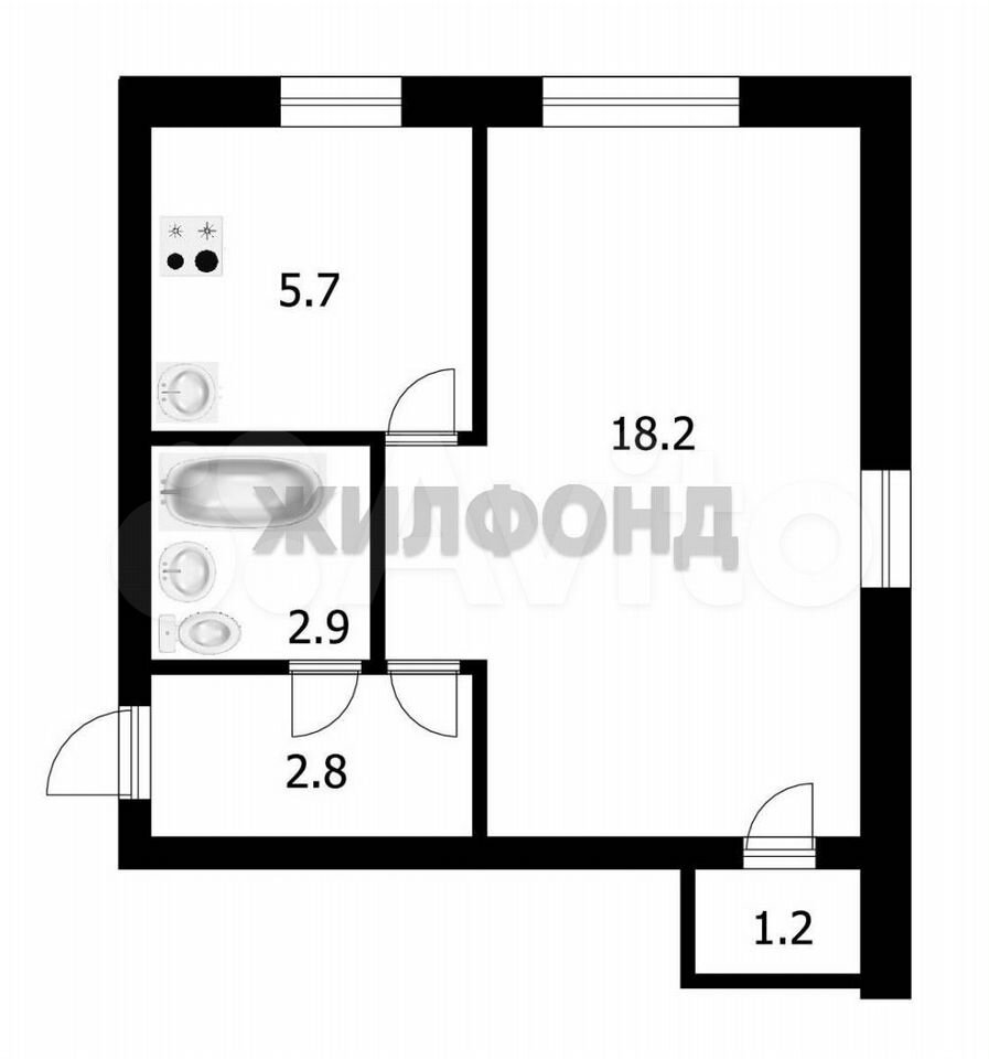 - Общая площадь: 30.8 м2