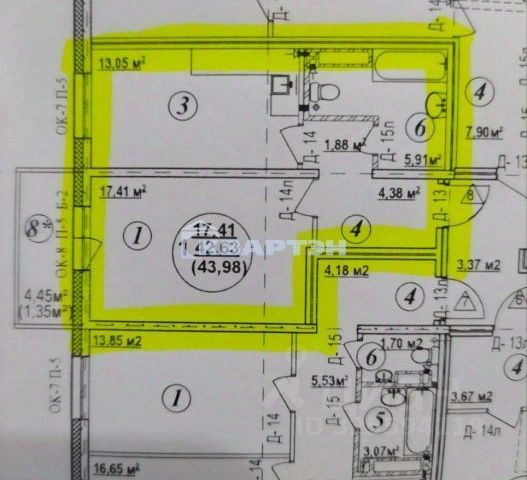 - Общая площадь: 43 м2