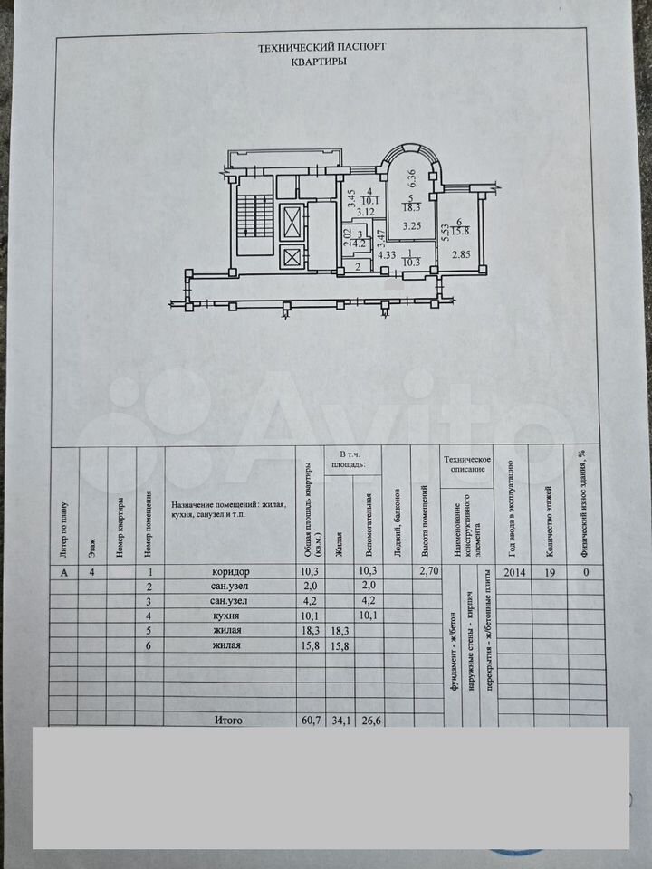 - Общая площадь: 60.7 м2