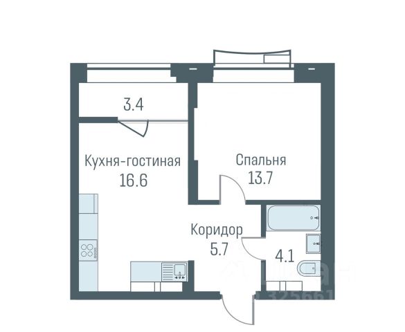 - Общая площадь: 41 м2