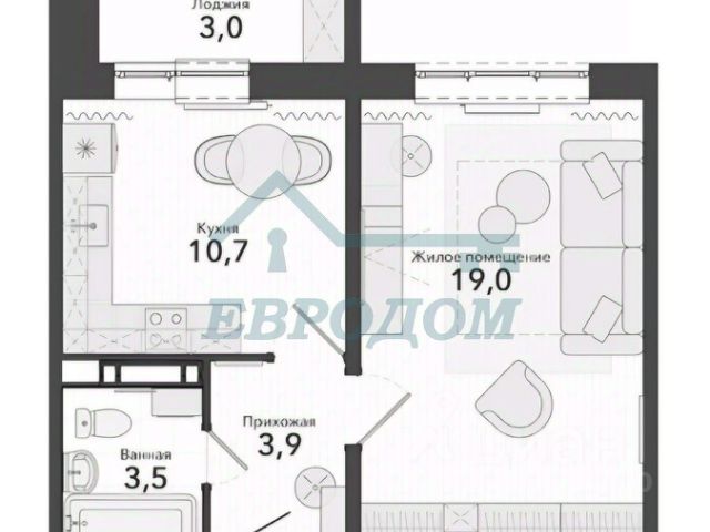 - Общая площадь 36.4 м2
