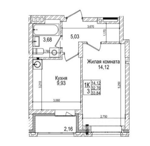 - Общая площадь: 32.8 м2
