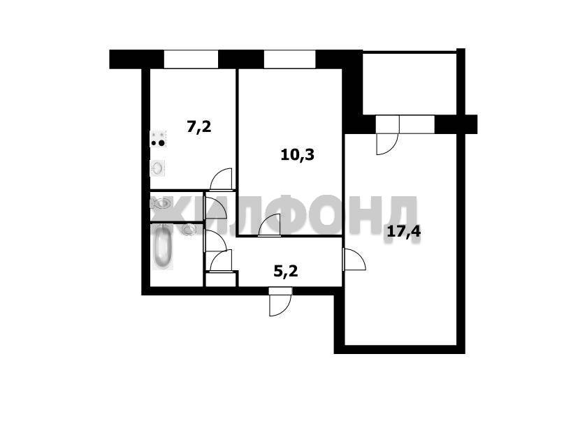 - Общая площадь: 43.6 м2