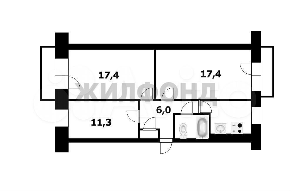 - Общая площадь: 61.6 м2