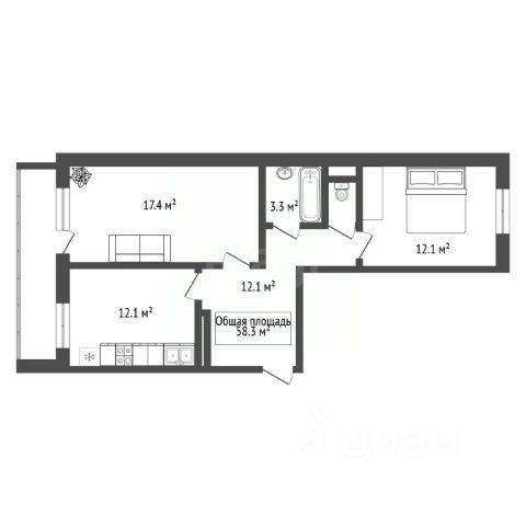 - Общая площадь 58.3 м2