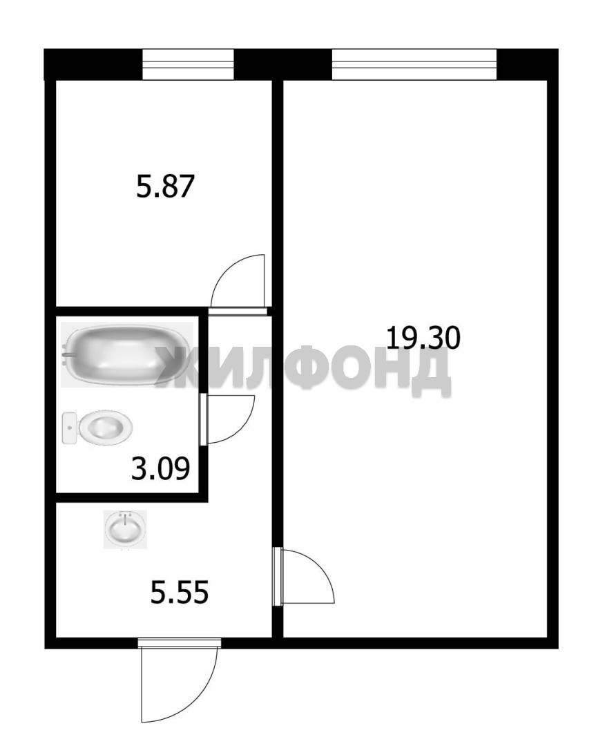 - Общая площадь: 33.4 м2