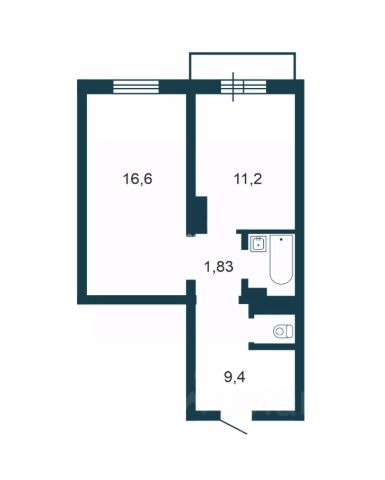 - Общая площадь 40.6 м2