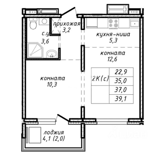 - Общая площадь: 34.8 м2