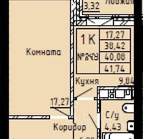 - Общая площадь: 41.7 м2