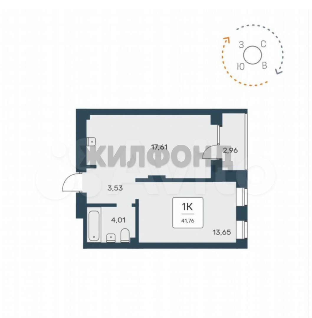 - Общая площадь: 42 м2