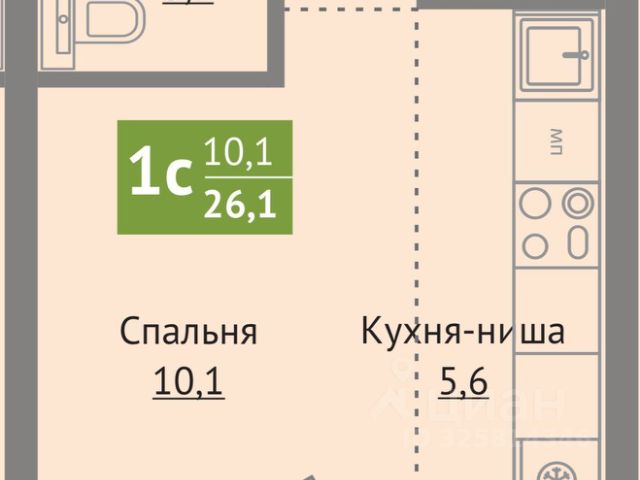 - Общая площадь 26.1 м2