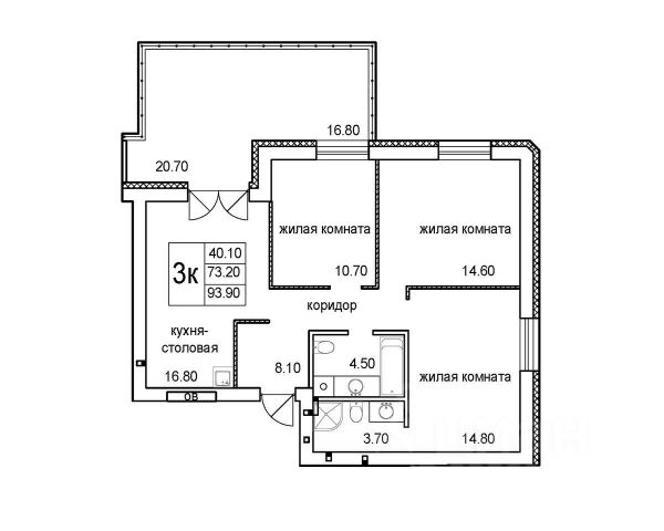 - Общая площадь: 93.9 м2