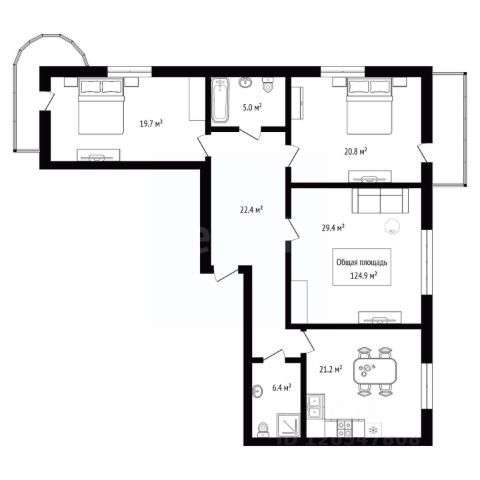 - Общая площадь: 124.9 м2