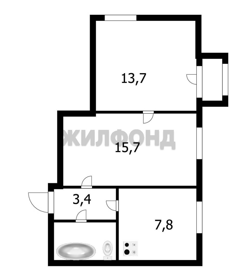 - Площадь кухни: 7.8 м2
