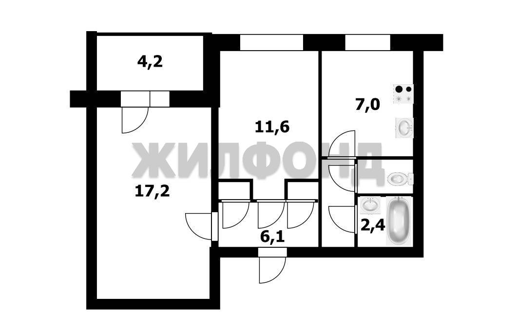 - Общая площадь: 46.5 м2