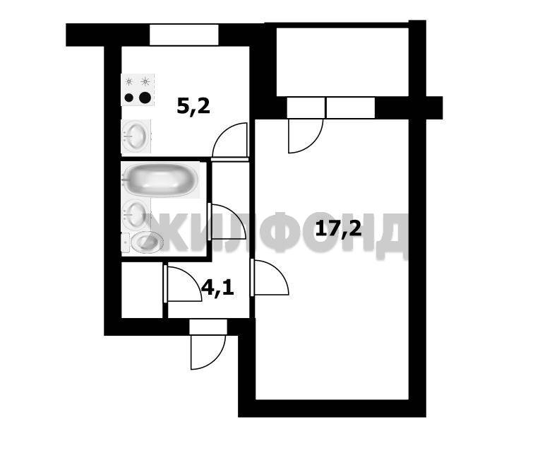 - Жилая площадь: 17.2 м2