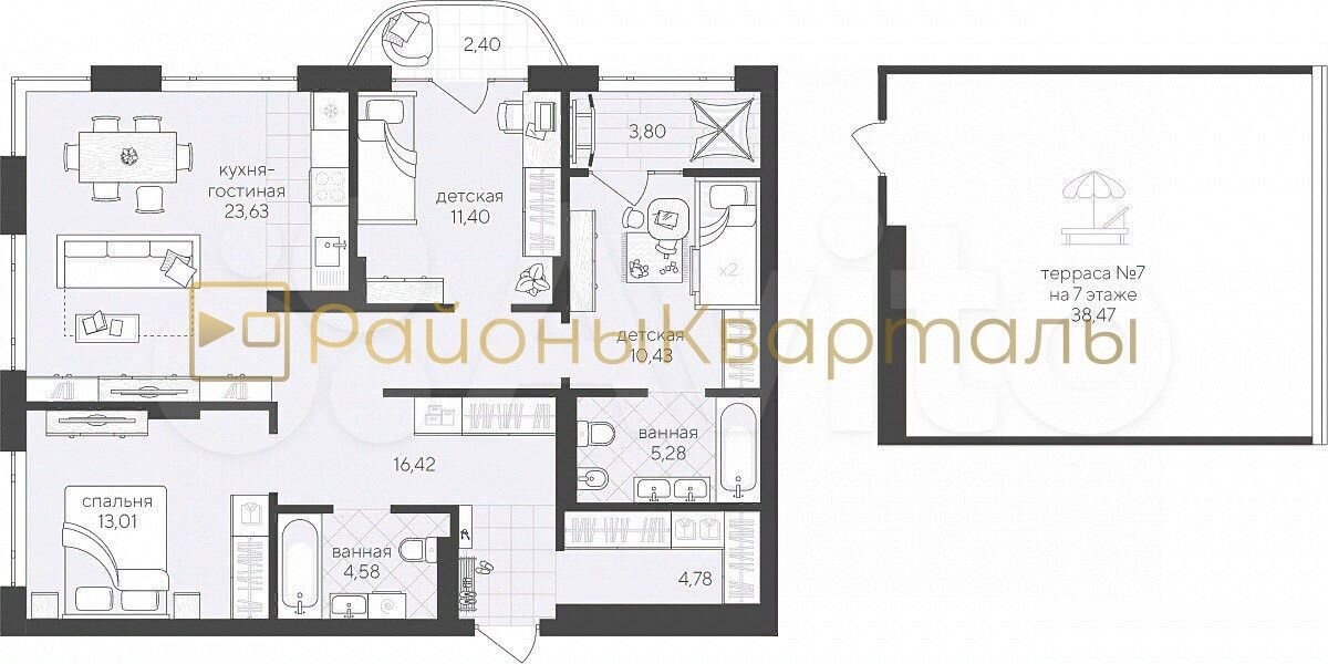 Арт. 128126380 Просторная квартира с выходом на собственную террасу в новом жилом комплексе, расположенном в живописном сосновом лесу, дом сдан! Преимущество перед вариантами от застройщика в том, что таких планировок больше нет! Это клубный дом 7 этажей, соответственно мало соседей и Выгодная Цена! Особенности квартиры: Площадь квартиры 89,3 кв. М. +Площадь террасы 38,4 кв. М. =Общая площадь 127,7 кв. М. На террасе можно разбить газон, посадить кустарники и деревья, поставить садовую мебель, качели. Создать свё уютное пространство. Кухня: Просторная кухня площадью 23,63 кв. М — идеальное место для кулинарных экспериментов и семейных обедов. Этаж: Квартира расположена на седьмом этаже семиэтажного здания с высокими потолками, достигающими 3 метров. Это обеспечивает отличное естественное освещение и создаёт атмосферу простора. Окна: Все окна выходят во двор, что гарантирует тишину и отсутствие уличного шума, создавая комфортные условия для проживания. Закрытая, охраняемая территория комплекса удивит своей изысканной архитектурой малоэтажных домов, ландшафтным дизайном. Прогулочная аллея, столы для настольного тенниса, детские площадки, фонтан, альпийские горки, беседки, релакс-зоны созданы для вашего приятного времяпрепровождения. В доме есть подземный паркинг и кладовые. Всего в 10 минутах езды от метро « Заельцовская», вы получаете все блага цивилизации с ощущением загородной жизни. Премиум-класса жилье у соснового бора с развитой инфраструктурой: магазины, Ozon, Wildberries, аптека, кафе, детские сады и школы, транспортная развязка в любой конец города. Внимание! Особенные Условия По Ипотеке! 13,4%!