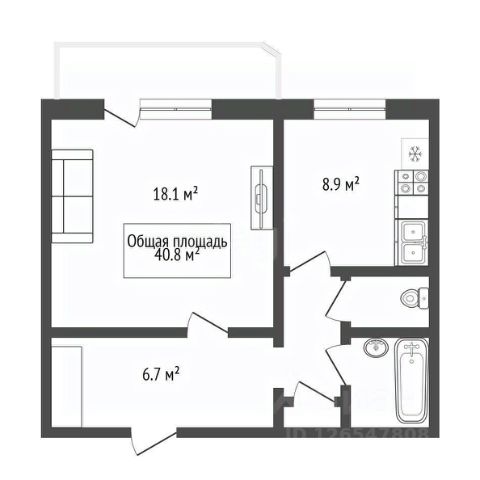 - Общая площадь 40.8 м2