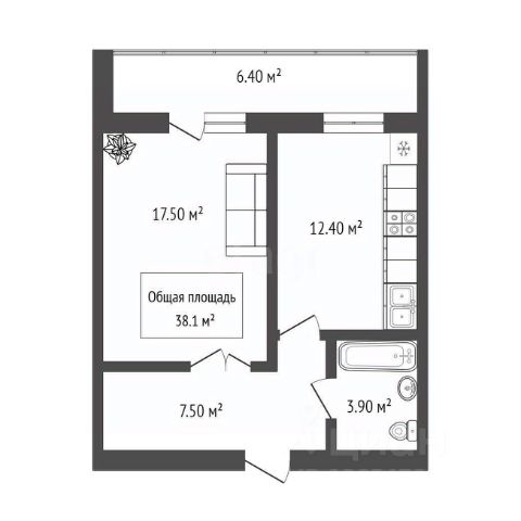 - Общая площадь 38.1 м2