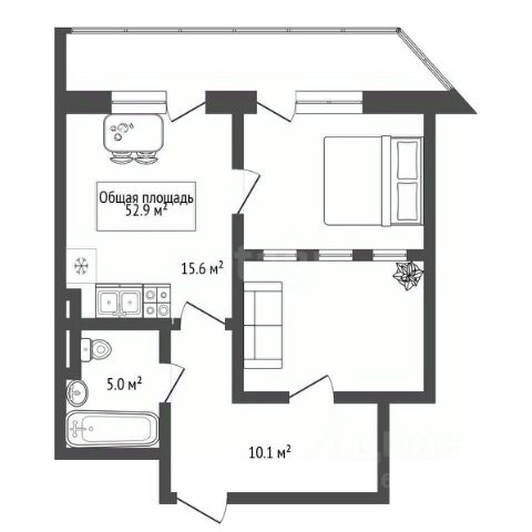 - Общая площадь: 52.9 м2