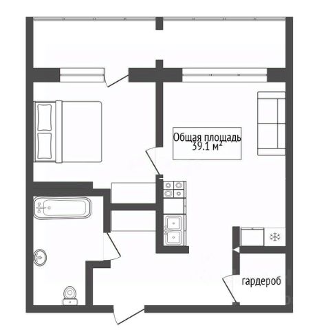 - Общая площадь 39.1 м2