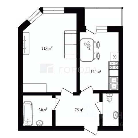 - Общая площадь: 48 м2