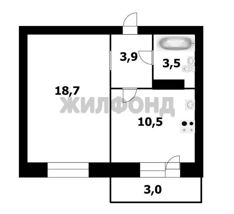 - Жилая площадь: 18.7 м2