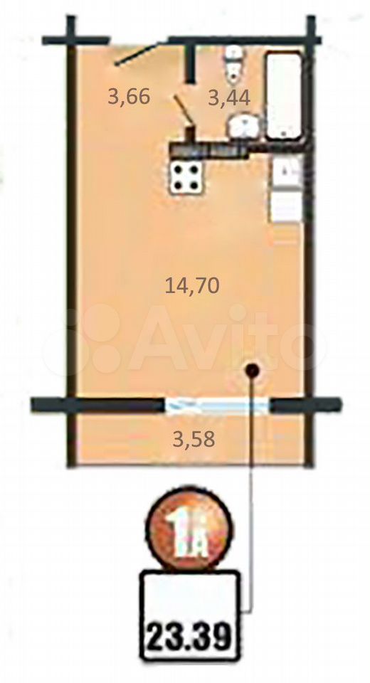 - Общая площадь 23.5 м2